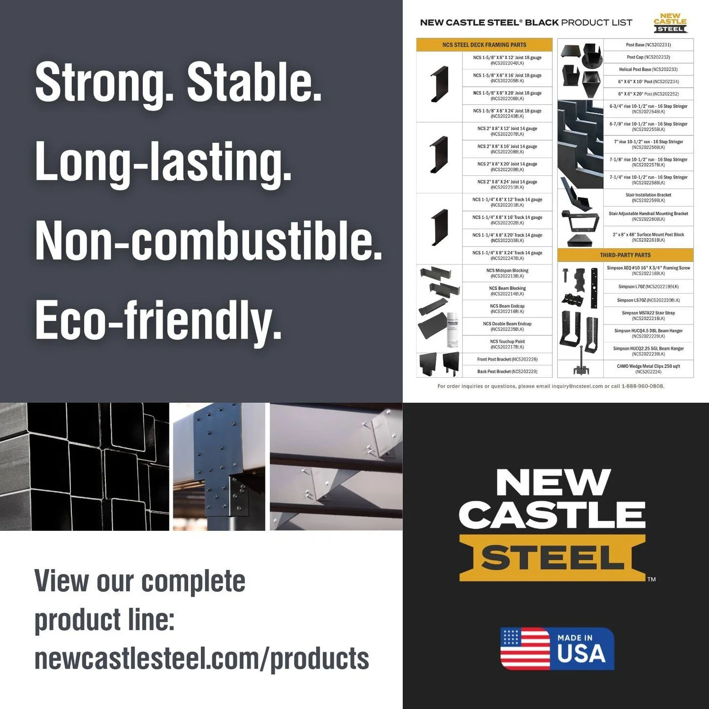 If you're wondering about logistics, New Castle Steel has you covered. Our products are proudly manufactured in America from 100% American-made steel. Our manufacturing facility, distribution center, and corporate offices are in Marietta, GA, and shipping is available nationwide. New Castle Steel is owned and operated by Jason Alloway, President of New Castle Steel. In his decades in the construction industry, he has built a reputation for expertise and strong relationships with clients and supply partners. New Castle Steel proudly continues that legacy.